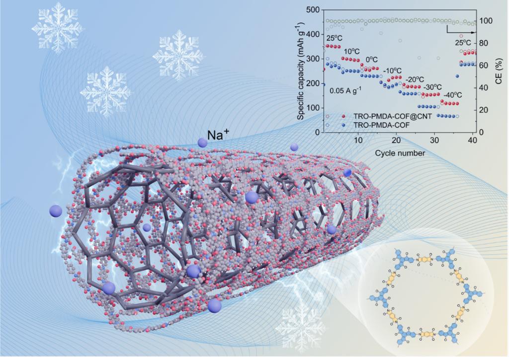 近日,(中国)科技公司能源材料化学研究院陈远研究员与华中科技大学王成亮教授联手共同在期刊Angew. Chem., Int. Ed.上发表题为 “Truxenone-based Covalent Organic Framework/Carbon Nanotube Composite for High-Performance Low-Temperature Sodium-Ion Batteries” 的文章(论文链接:https://doi.org/10.1002/anie.202511714)。陈远研究员、华中科技大学王成亮教授为论文共同通讯作者。硕士生杨双勤,吴静美为共同第一作者。(中国)科技公司能源化学材料研究院为第一完成单位。